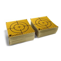 • ✔️ ZIELBILD UND FARBEN - Bei uns finden Sie die reflektierenden Zielmarken in verschiedenen Größen ( 40x40mm, 60x60mm, 100x100mm ) sowie Farben (weiß, orange, gelb, seladongrün). Durch die zwei konzentrischen Kreise und mittig einen Strichkreuz eignet sich die Marke sowohl für kurze als für lange Distanzen