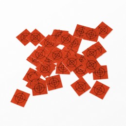 ✔️ ZIELBILD UND FARBEN - Bei uns finden Sie die reflektierenden Zielmarken in verschiedenen Größen ( 20x20mm) sowie Farben (weiß, orange, gelb, seladongrün). Durch die zwei konzentrischen Kreise und mittig einen Strichkreuz eignet sich die Marke sowohl für kurze als für lange Distanzen.