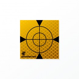 Samoprzylepna folia dalmiercza o rozmiarze 60mm x 60mm lub 40mm x 40mm z nadrukowanym czarnym krzyżem w dwóch okręgach