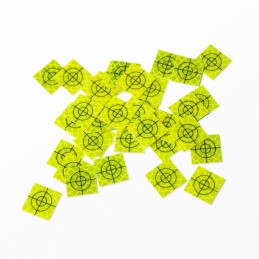 Samoprzylepna folia dalmiercza o rozmiarze 20mm x 20mm z nadrukowanym czarnym krzyżem w dwóch okręgach