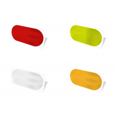 • ? Odblaskowe żółte, białe, czerwone, pomarańczowe, zielone do oznaczania pojazdów, przyczep, maszyn budowlanych, wózków dziecięcych, wszystkich przenośnych zabawek, sprzętu sportowego, domów, drzew, ogrodzeń, bram wejściowych, słupków i wszystkich infrastruktury ulicznej, wszystkich przedmiotów i obiektów.